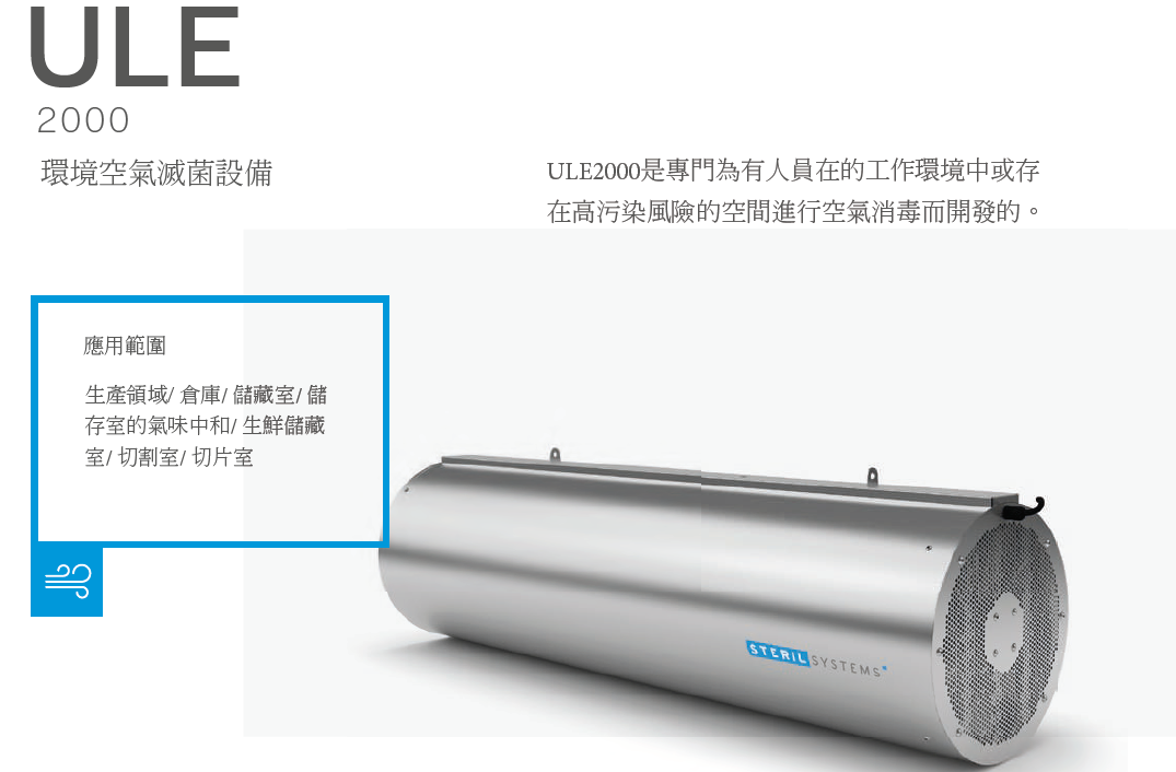 ULE2000紫外線殺菌系統是專門為有人員在的工作環境中或存在高污染風險的空間進行空氣消毒而開發的。