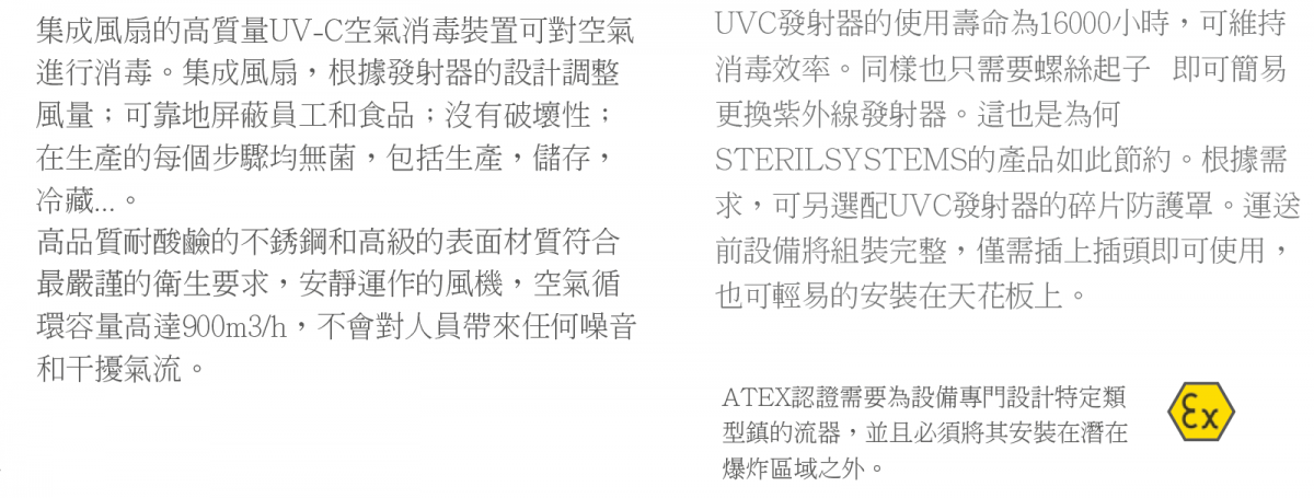 集成風扇的高質量UV-C空氣消毒裝置可對空氣進行消毒。集成風扇,根據發射器的設計調整風量;可靠地屏蔽員工和食品;沒有破壞性;在生產的每個步驟均無菌,包括生產,儲存,冷藏...。