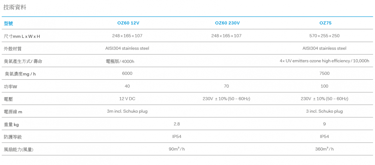 ➤設備:小型化、易於清潔的不銹鋼外殼、高質量臭氧產生。
