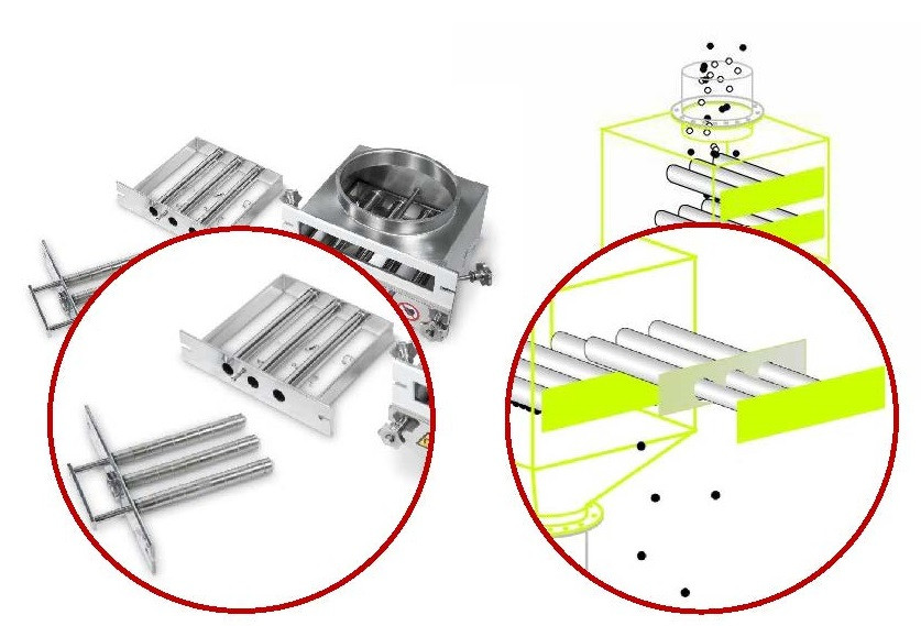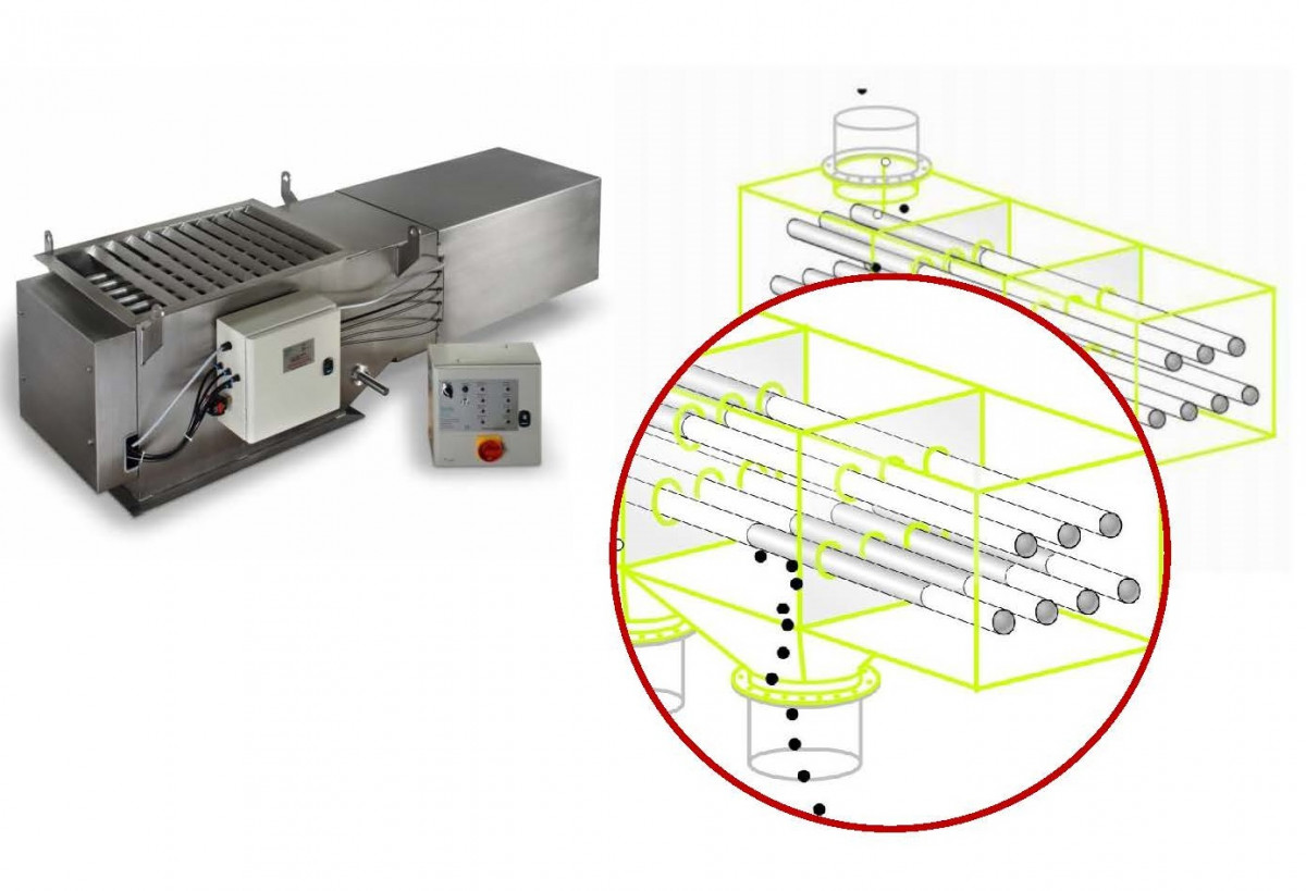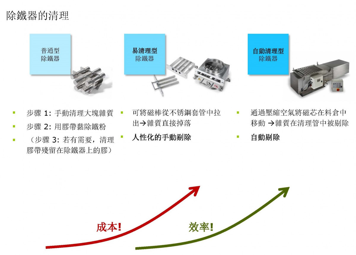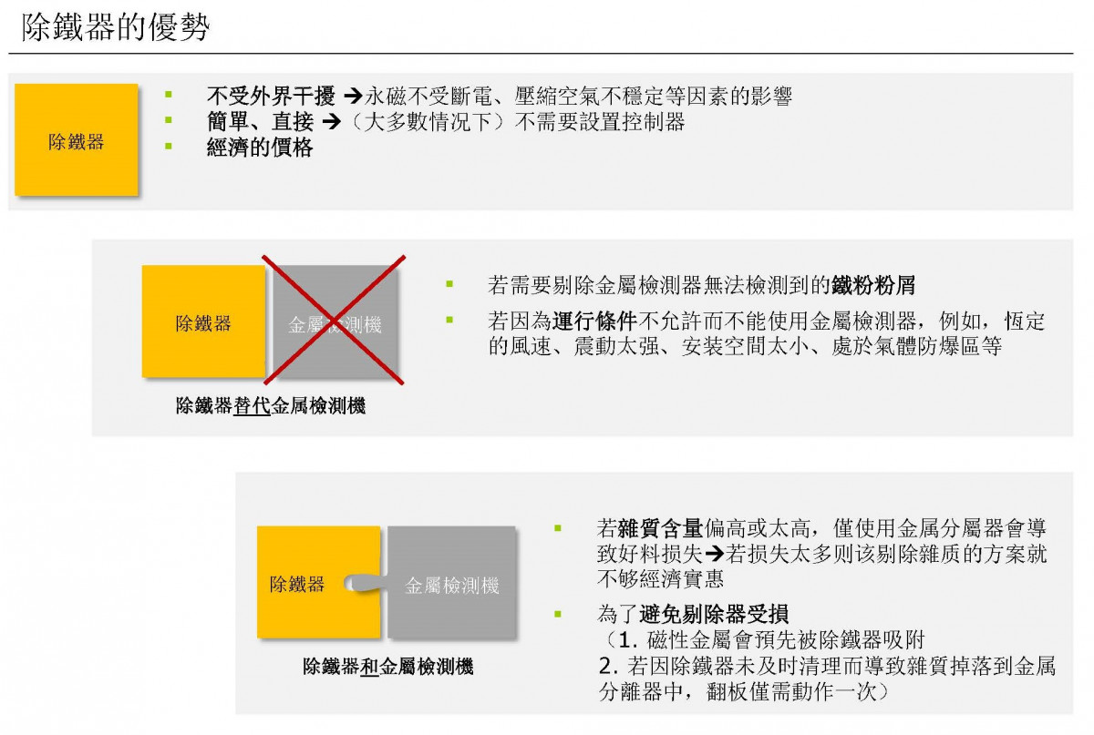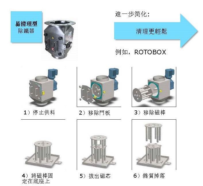 磁選機(除鐵棒)超過13,000高斯的強力磁鐵,可以將產品內的鐵異物及鐵粉有效吸附、去除,以保護生產設備、提升產品品質及食品安全。除了自由落體形式,亦可針對充填管道、液體輸送等需求客製。