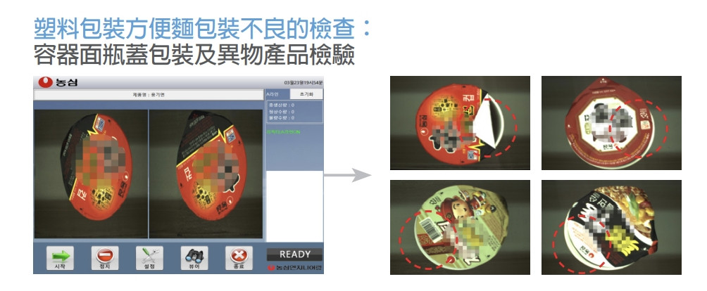 針對包裝不良、封口異常、罐裝或瓶裝封口缺陷檢測、包裝和容器包裝...等產品外觀不良的檢測。